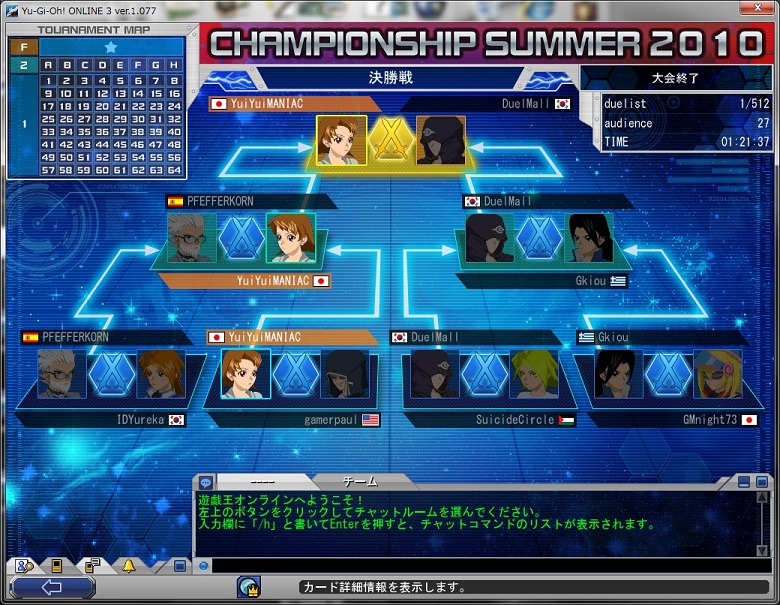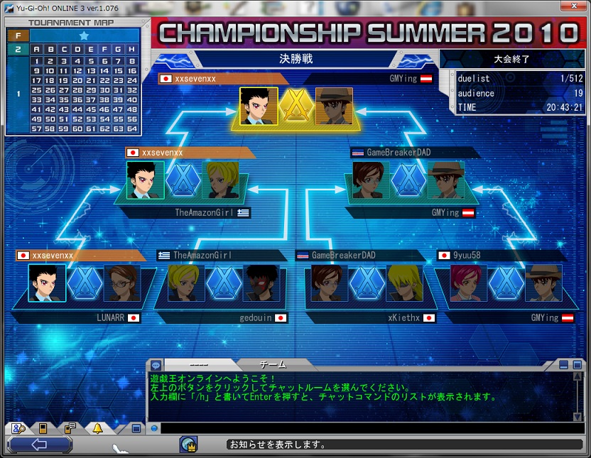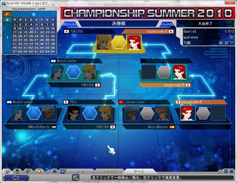 YUGIOH ONLINE CHAMPIONSHIP WINTER 2010 予選第6回 CHAMPIONSHIP 2010年08月16日 サブで予約していたので参加。もうひとつ抽選も通りました。しかし結果は1回戦負け。プレミスが多かったのでしゃーないです。