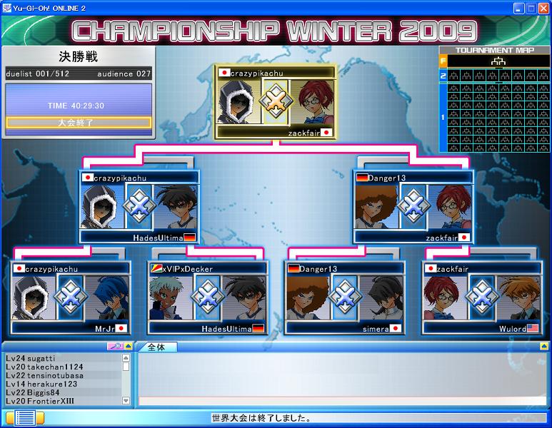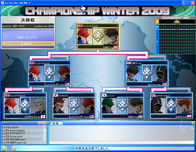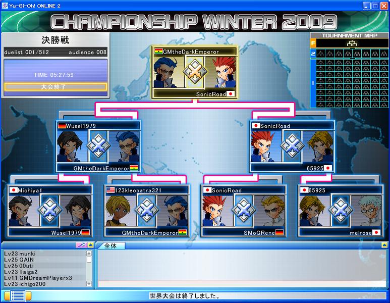 YUGIOH ONLINE CHAMPIONSHIP WINTER 2009 予選第9回、第10回 CHAMPIONSHIP 2009年11月23日 第9回は寝坊でOUT。第10回は体調不良によりPASS。予約していたのにもったいなかった。あとは今週末と第16回のみ。週末は仕事なので出れない可能性大。ラストに掛けましょうかねー。